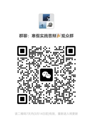 本次答辩会面向全校开放,感兴趣的同学可以线下观看,参与即可得1素质积分奥!请扫描下方二维码进观众群~