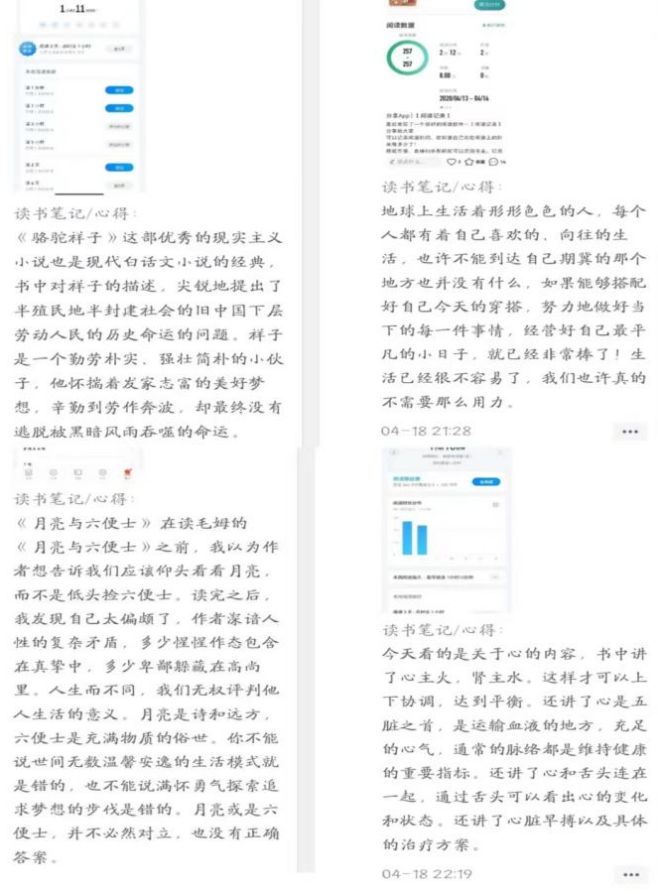也有同学在读书中领悟了一些人生的哲理,他在读后感中这样写道:“世事无常才是常态,除了自己是自己的,其余都是外物。有时候甚至连自己都不一定完全属于自己,多少人被小我所掌控,被自己的情绪、欲望左右。甚至百年之后,我们的故事也无人知晓。珍惜当下吧,那是我们的所有。”珍惜当下,不要患得患失,当下的所拥有的一切才是我们所有的,是我们应该去珍惜的!