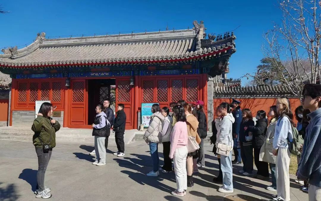 上午9点半,师生们抵达三庙一塔。“三庙一塔”是华北地区较大的三教合一古建筑群,是运河文化重要承载地,诉说着通州千年的发展兴衰。古塔与公园相望,同学们身处其中感悟历史回响,领悟运河文化底蕴。