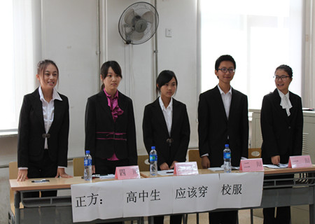 由于场地和人员安排的原因,本次辩论赛共分为前后两场。大一新生八个班参加了本次比赛,比赛顺序通过抽签决定,最终比赛顺序为122110001班VS122110002班、122110003班VS122110007班、122110006班VS122110008班、122110004班VS122110005班。比赛论题分别为“高中生是否应该文理分科”、“中员工是否应该穿校服”、“限娱令能否提高娱乐节目的质量”、“大学宿舍是否应该断网断电”。