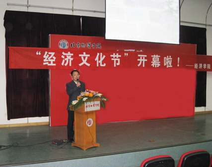“经济文化节”是伟德国际bevictor1946面向全校各院系举办的一个大型系列活动,从第一届以“拓宽视野,学以致用,精彩生活,成就自我”为主题,到本届以“复苏”为主题,能够看出活动有着紧贴经济脉搏,与时俱进的特点,能够让同学们从中了解更多的经济动态,把握形势,走在理论和实践的前沿。为了扩大活动影响面,吸引更多的不同专业的员工参与进来,本届“经济文化节”特别举行了本次开幕式。