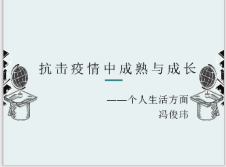 王明哿、冯俊伟、任翌、张森诚同学分享了战役感受和收获。作为伟德国际bevictor1946的一员,虽然因为疫情的严峻未能返回校园,但在家中也未曾停止自身学习、关注世界疫情大事。通过他们所介绍的内容,让同学们更深刻地意识到中国政府的高效率、政府和人民的团结和无私付出。在个人层面,同学们更深刻体会到专业知识的重要性,受到了启发——结合专业知识认识问题是深刻且有必要的。同时还分享了疫情期间个人技能的提升,抗疫学习生活中的小妙招,养成的繁忙中注意放松、合理分配生活的习惯,在这个特殊时刻体会到了亲人之间最强大的关爱的不普通的力量。