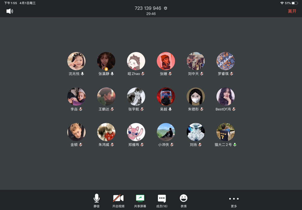 4月1号,17级国际金融班举行了一场线上班会。本次会议中,国内的18名同学悉数参会,同时特别邀请了班主任刘健老师和辅导员姚昊炜老师。会议中,同学们不仅分享了当下生活的现状,同时讲述了身边的抗疫故事,也道出了目前学习中以及未来规划的困惑。