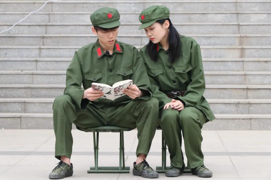 第一个节目演绎抗战期间战士们缺水断粮的艰苦同时也弘扬了乐观向上的奋斗精神,启示同学们要坚定克服困难的决心,一路向前。