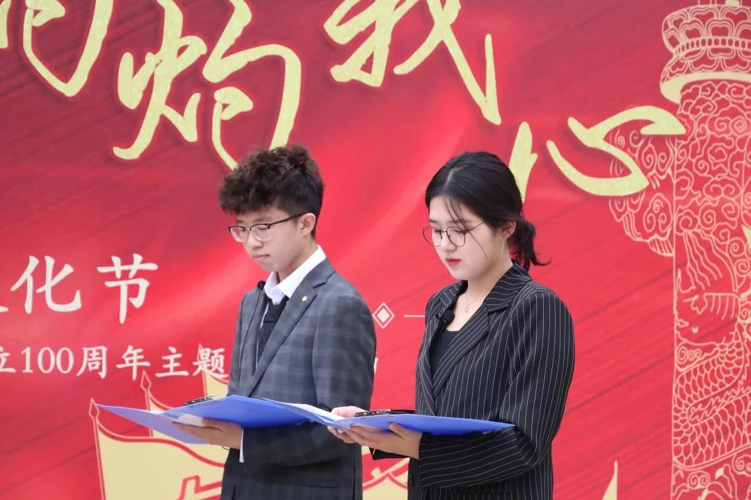 本次活动在国贸一班韩天畅同学和金融三班徐楚凝同学声情并茂的朗诵声中拉开序幕,从中国共产党百年征程中的光辉事迹巧妙自然地将关注点转移到了表演节目上。