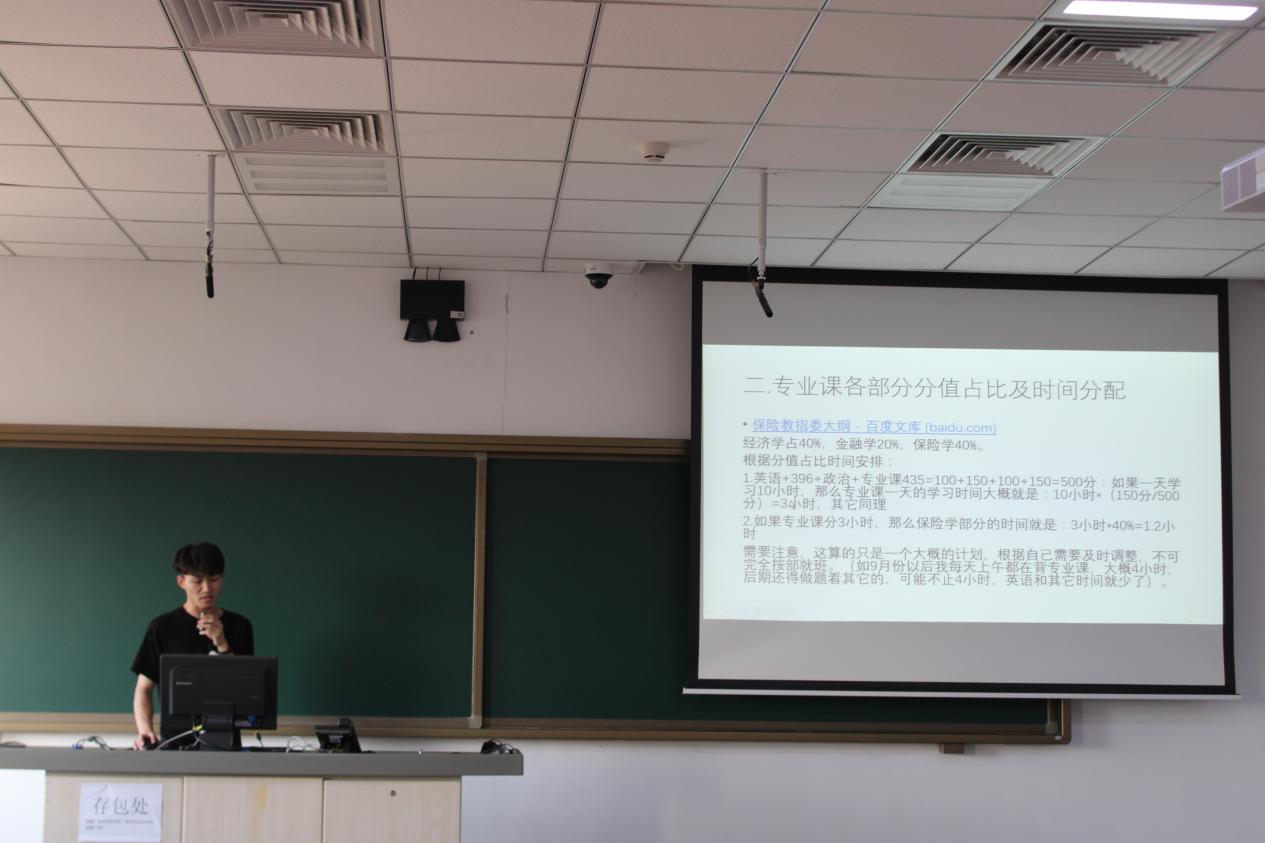 赖文峰学长首先分享了自己选择报考中央财经大学保险专硕的原因,然后讲了自己在选择志愿前做的各方面信息搜集以及决定志愿后自己所做的准备,包括专业课各部分分值占比、时间分配、专业课背诵方法以及复试科目的准备。最后,解答了同学们关于复习资料推荐、复试准备相关的问题。