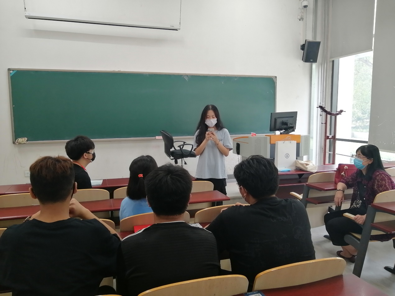 然后,21级双培生班主任原玲玲老师总结讲话,原老师首先祝贺同学们顺利通过高考,成为一名准老员工,同时她又向21级双培生提出了五点要求:一要尽快适应老员工活,平衡好学习和生活节奏;二要提高信心,学会处理人际关系,与中财和物院师生保持密切联系;三要有忧患意识,找到差距,化压力为动力;四要勤学苦练,多读书,读好书,参加员工社团;五要珍惜在中财的宝贵学习机会,充分利用公司资源提升综合素养。最后,原老师祝愿同学们在大学四年中找到自己的方向,能力与人际关系并重,度过充实、圆满的老员工活。