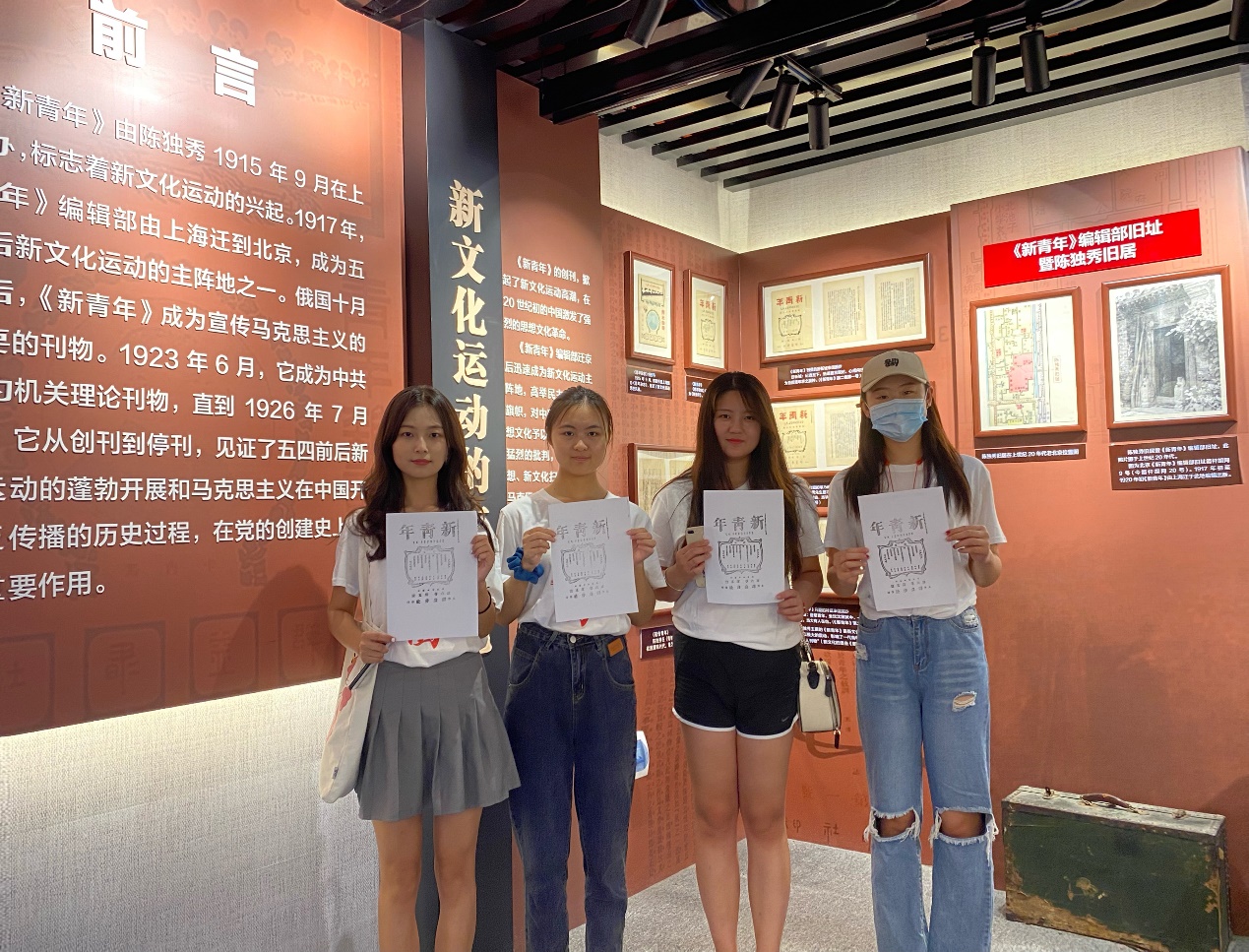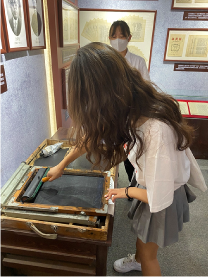 实践队员们怀着崇敬的心情学习参观了旧址内原景重的了陈独秀及其家人生活陈列,仔细研读了陈独秀、李大钊编辑《新青年》时往来书信及编者作者之间的通信手札,充分了解和感受中国先进知识分子探索救国救民的初心和使命。队员们还追随革命现任,体验了油印杂志,可以亲手印制第一版《新青年》封面并加盖当日纪念章。