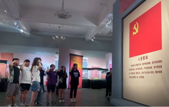 7月13日上午9时,队员们共同前往河北博物院进行参观。河北博物院以满城汉墓出土文物、河北古代四大名窑瓷器、元青花、石刻佛教造像、明清地方名人字画以及抗日战争时期文物最具特色。这次我们主要参观的是庆祝建党一百周年主题馆:“英雄的土地辉煌的历程——庆祝中国共产党成立100周年河北党史图片档案文献展”。