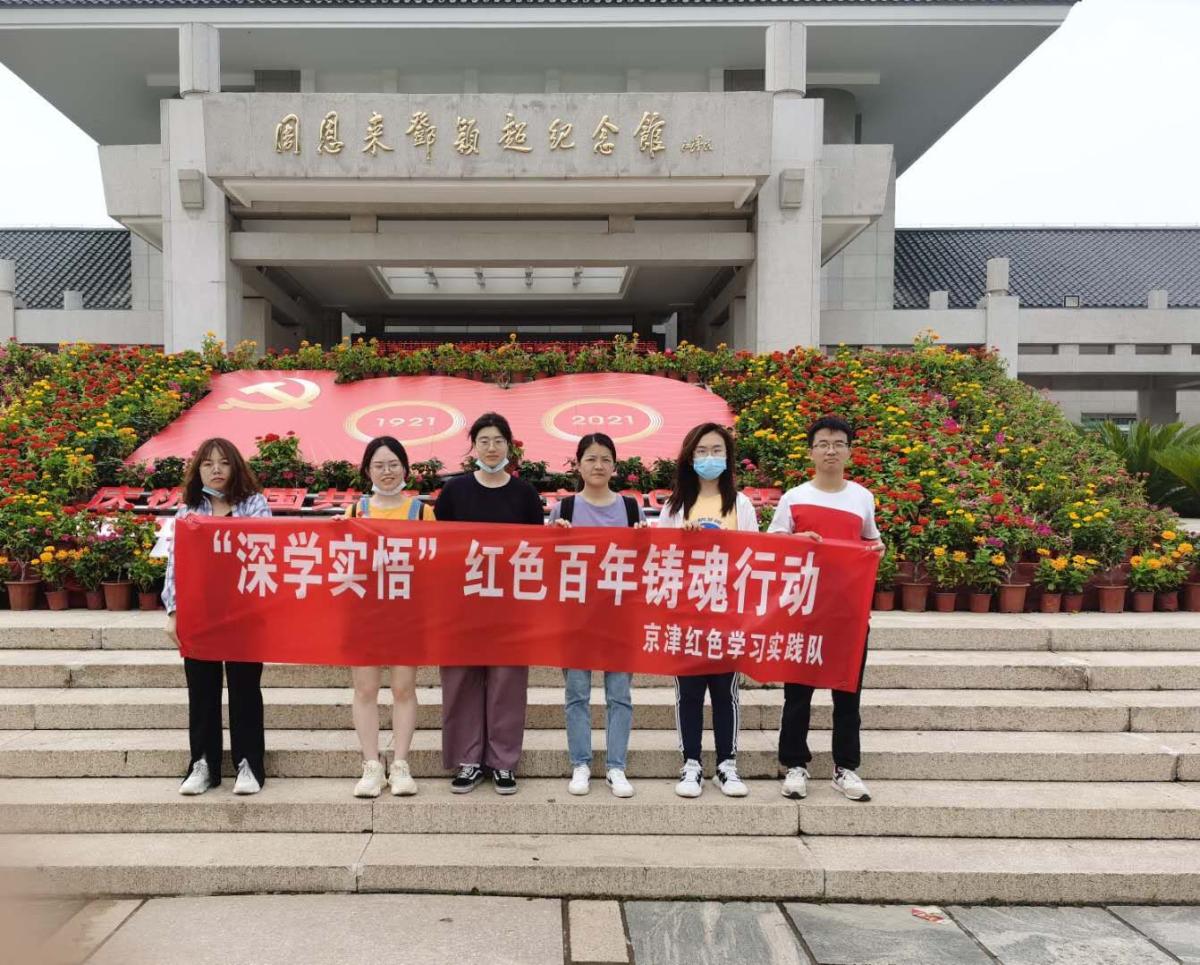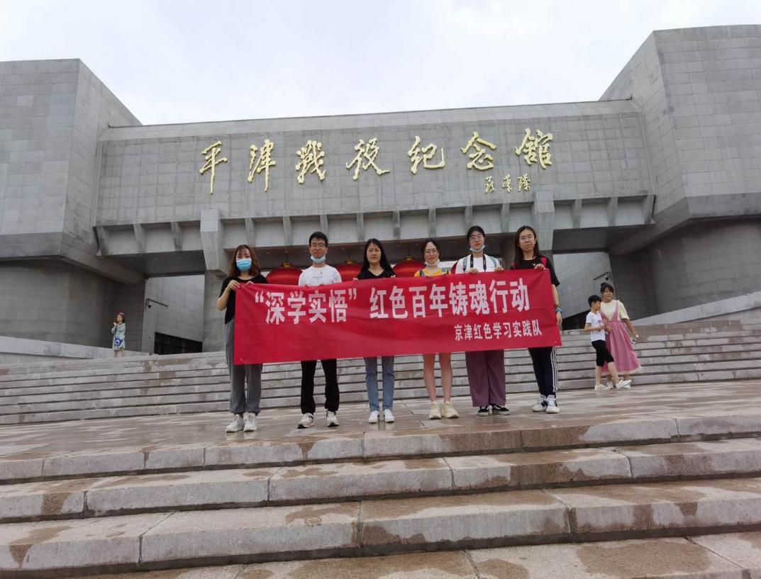 2021年7月13日、14日,在支部书记陆畅老师的指导下,国贸支部党员李可可,冯国红,倪骏豪,黄一嘉,樊新月,张芊到达天津开展了为期两天的红色百年铸魂行动的暑期实践活动。