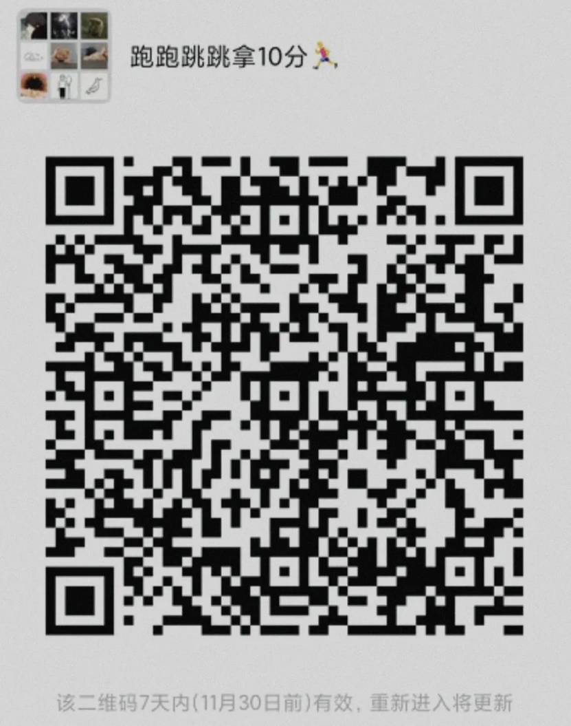 奖品如此丰厚,大家还在等什么,赶紧扫码进群,一起锻炼拿下这10分吧!