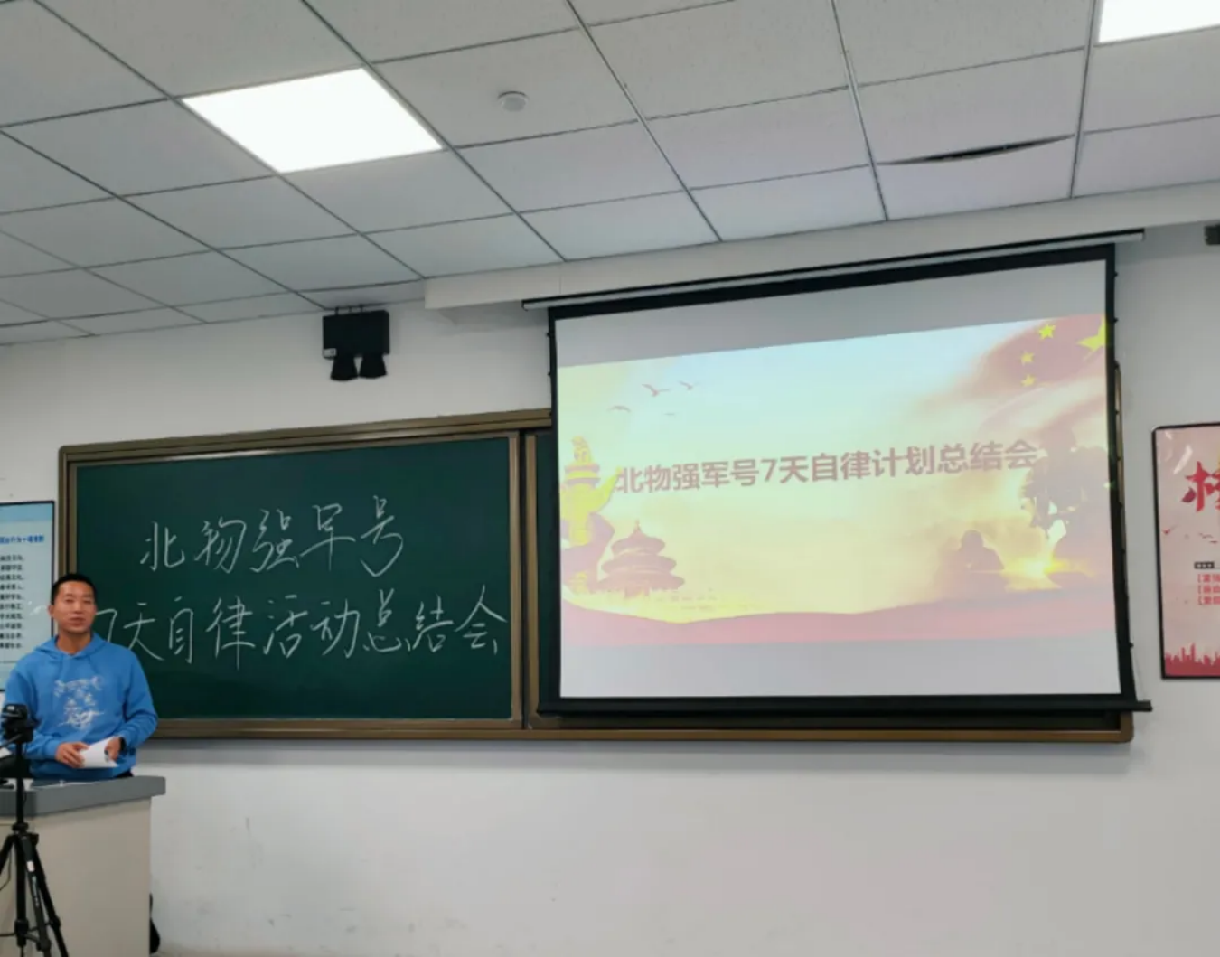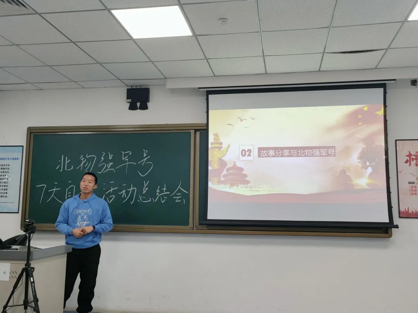 总结会在欢快愉快的气氛中缓缓开始,会议主要分为7天自律计划活动总结、军旅故事分享与强军社简介、征兵政策宣讲于意愿收集三个流程。