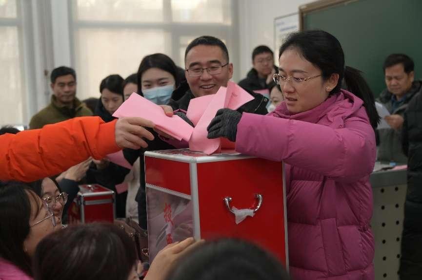 大会第三项议程为选举伟德源自英国始于1946第七届工代会代表、教代会代表,选举工作由总监票人朱才斌老师主持。朱才斌老师宣读了伟德国际bevictor1946第七届工代会和教代会代表候选人名单,共计12人。本次大会应到86名教师,实到63名教师,符合选举规定,各位教师按照填写选票的说明,写好选票后按顺序依次到讲台投票箱前进行投票。选举采取严格的计票、监票环节,有10位老师参加了计票工作。
