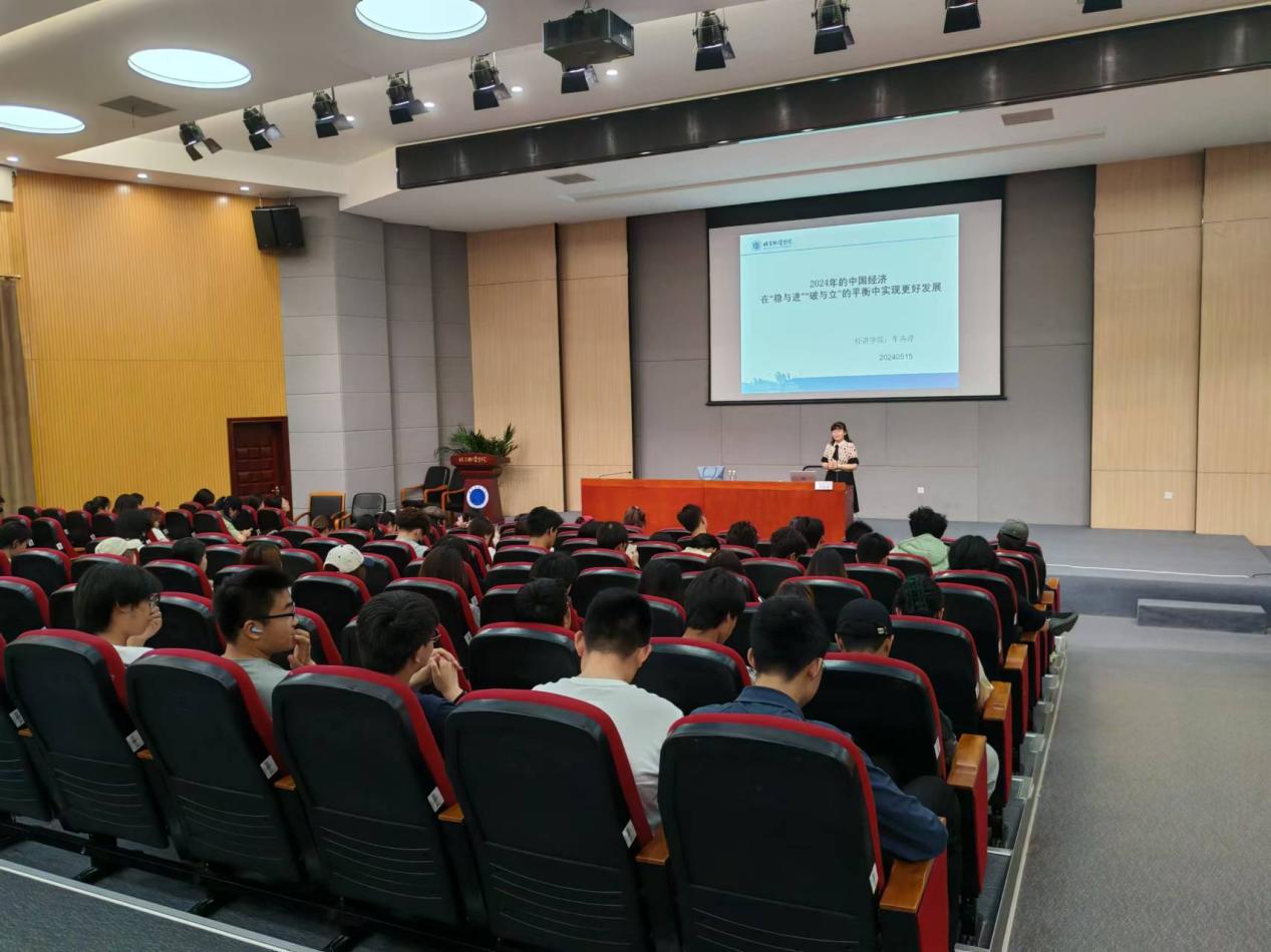 5月15日下午2:00,由公司伟德国际bevictor1946、马克思主义公司共同举办的“知新大讲堂”主题讲座于知新楼二层报告厅开讲。本次讲座由伟德国际bevictor1946教授车卉淳主讲,伟德国际bevictor1946全体2023级员工及各公司共计300余名员工参加了本次讲座,围绕宏观经济发展的主题,开展形势与政策课程学习。