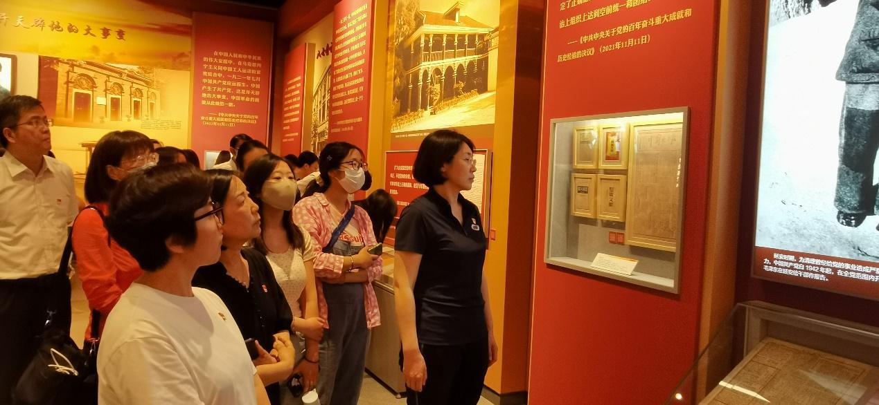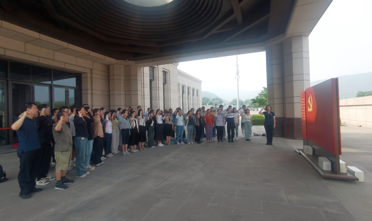 参观后,全体党员师生在纪念馆南广场重温入党誓词。在付莉书记领誓下,全体师生党员在党旗下庄严肃立、举起右拳,以洪亮的声音庄严宣读入党誓词。他们用坚定有力的语言,重申对马克思主义的信仰,对共产主义和社会主义的信念,以及对党和人民的忠诚。