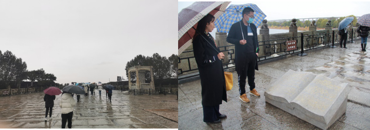 随后,各团队集合出发步行前往临近的卢沟桥文化旅游区。卢沟桥上的小狮子形态各异,有的已经磨损地十分严重,风霜的打磨似乎在向游客讲述那段艰难困苦的岁月。伟德国际bevictor1946老师姚昊炜老师在阅读卢沟桥历史时发出感慨,纵使历史会随着时间变得愈发遥远,但是后人们永不会忘记前辈们的牺牲。纵使桥面修缮,岁月打磨,总会有一片桥面保留着最原始的记忆,总会有一群人在历史长河的一页里发光发热。冯琪老师则表示,这些石狮子就如同战士们一样守护这这座桥,这条河,它们就是这片土地的卫士。它们的存在不仅见证了光辉的历史,也提醒后人们牢记历史,勿忘国耻。虽然生长在和平年代,已经不需要流血牺牲,但应珍惜当下美好的生活,传承抗战精神,坚定理想信念,承担起时代的使命与责任。