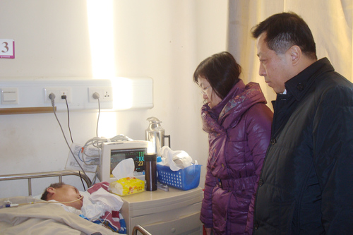 在病房里,翁董事长向顾老师的家人仔细询问了病情,对顾老师病情的好转表示欣慰,并用眼神和手势与顾老师做了简短的交流,向顾老师传递了全校师生的关心与祝愿,鼓励顾老师积极配合医院治疗,勇敢地战胜病魔。随后,翁董事长代表公司将公司师生的爱心捐款共计38725元交到顾老师家人手里,顾老师的家人对公司领导和师生给予的关爱表示由衷感谢。最后,翁董事长还就一些细节细心地叮嘱家人和看护的护工,好好地照料顾老师。