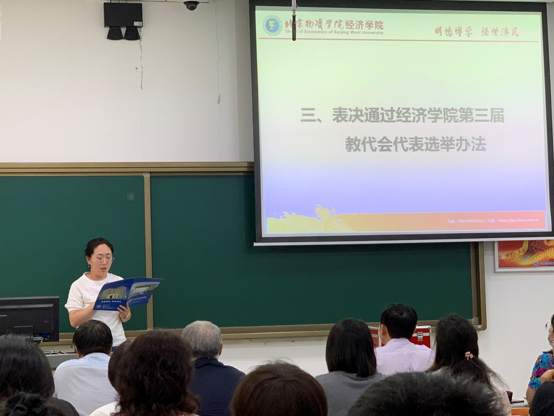 接着,按照大会议程,由霍烨老师宣读《伟德国际bevictor1946第三届教代会代表选举办法(草案)》,然后经举手表决,全体教师一致通过伟德国际bevictor1946第三届教代会代表选举办法;经举手表决,全体教师一致通过伟德国际bevictor1946第三届教代会代表候选人名单,共计26人;经举手表决,全体教师一致通过伟德国际bevictor1946第三届教代会换届选举工作监票人名单。监票人为李彤、熊湘敏、韩春丽三位老师,总监票人为李彤老师。
