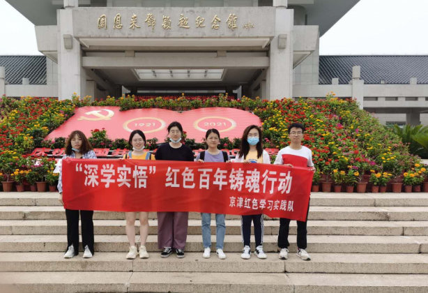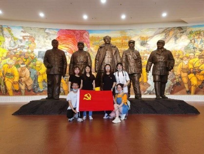 2021年7月13日、14日,在支部书记陆畅老师的指导下,国贸支部党员李可可,冯国红,倪骏豪,黄一嘉,樊新月,张芊到达天津开展了为期两天的红色百年铸魂行动的暑期实践活动。