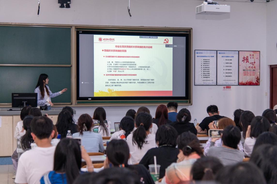 最后黄珊珊老师讲解毕业生党员组织关系转接知识。黄老师从党组织关系转接范围、转接流程、申请保留的条件和手续、问题说明四方面详细说明了党组织关系转接工作。希望毕业生党员们严肃认真地对待党组织关系转接,珍视党员身份、增强党性意识,发挥党员作用,时刻以一名党员的标准严格要求自己。