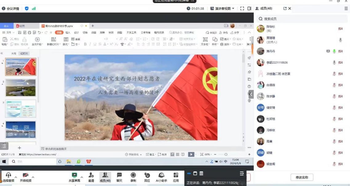 为开展“成才观、职业观、就业观”系列教育,伟德国际bevictor1946的三位优秀毕业生党员围绕“到祖国需要的地方去”分享了就业经验。21级研究生蒋丹丹同学作为西部计划志愿者,以“有理想的践行者”为题分享了她为什么参加西部计划、如何参加西部计划、工作感想体悟三方面内容,以个人的切身体会激励毕业生党员要拼搏奋进,努力提升人生境界,让青春之花绽放在祖国最需要的地方。有参军入伍经历的2023届本科生员工刘文星,目前就职于一家市属事业单位,他围绕参军入伍主题,结合自身参军经历,详细讲解了当兵入伍的相关政策,分析了当前的就业形势、高校毕业生当兵的优势,鼓励大家从自身情况出发,积极报名参军。现在中国民生银行北京房山支行工作的2023届本科生员工王庚辰则围绕行业基层就业,讲解了银行从业内容、求职的心路历程,并从自身、背景、能力与目标四个方面分享了如何摆正心态、如何积极主动学习、如何适应银行的工作环境。