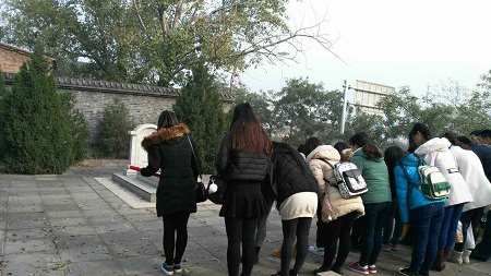 在前往抗日战争纪念馆的路上,我们经过了赵登禹将军墓。赵登禹将军在1937年7月28日对日军作战时壮烈殉国,时年39岁,是抗日殉国的第一位师长。同学们自发的排好队在赵登禹将军的墓地前深鞠一躬,以表示对抗日先烈的崇敬之情。在抗日纪念馆的参观,我们看到了非常有历史价值的图片,是抗日先烈们的勇敢不屈才换来了我们今日的幸福生活。我们应勿忘和平正义来之不易,勿忘复兴之路任重道远。