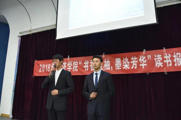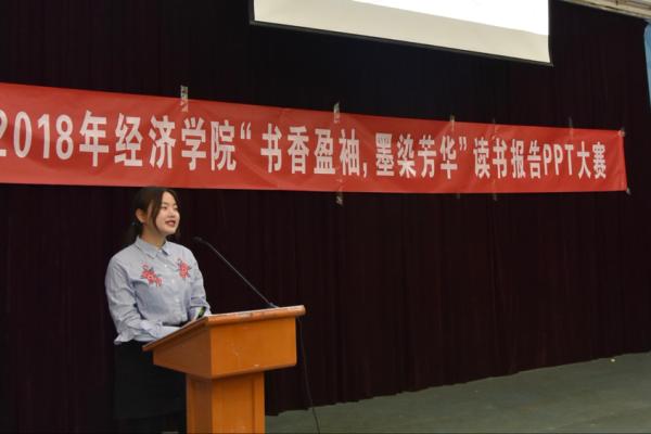在比赛中,各位18级代表班级参赛的选手与指导学长学姐结合PPT一起向大家介绍了自己读过的好书,有与经济学相关的《经济学通识课》和《日本战后经济史》,也有结合体会令人感动的《活着》和《摆渡人》,从人文的角度介绍《撒哈拉的故事》和《麦克白》,从历史的角度讲述《大江东去》,从当下的身份分析《你的生命有什么可能》。评委根据选手的讲述和表现进行提问和点评,选手们认真回答。