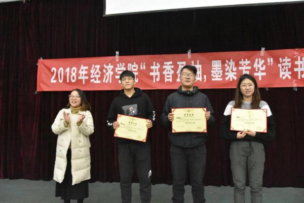 最终获奖名单:一等奖:金融二班,二等奖:国贸一班、国贸二班,三等奖:金融一班、期证一班、国际金融班,优秀奖:经济一班、经济二班、期证一班。根据读书报告初赛班级内部开展情况选出了三个“最佳组织”班级,它们分别为:金融一班、金融二班和期证一班。