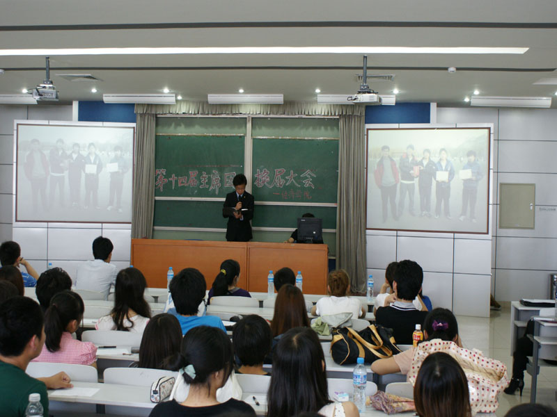 六月八日下午,伟德国际bevictor1946在国交一层召开了第十四届分团委员工会主席团换届竞选大会。出席此次大会的有伟德国际bevictor1946党总支副书记张建宝老师、辅导员赵文老师、王有老师、武凌云老师。现任主席团主席张帆主持了此次大会。