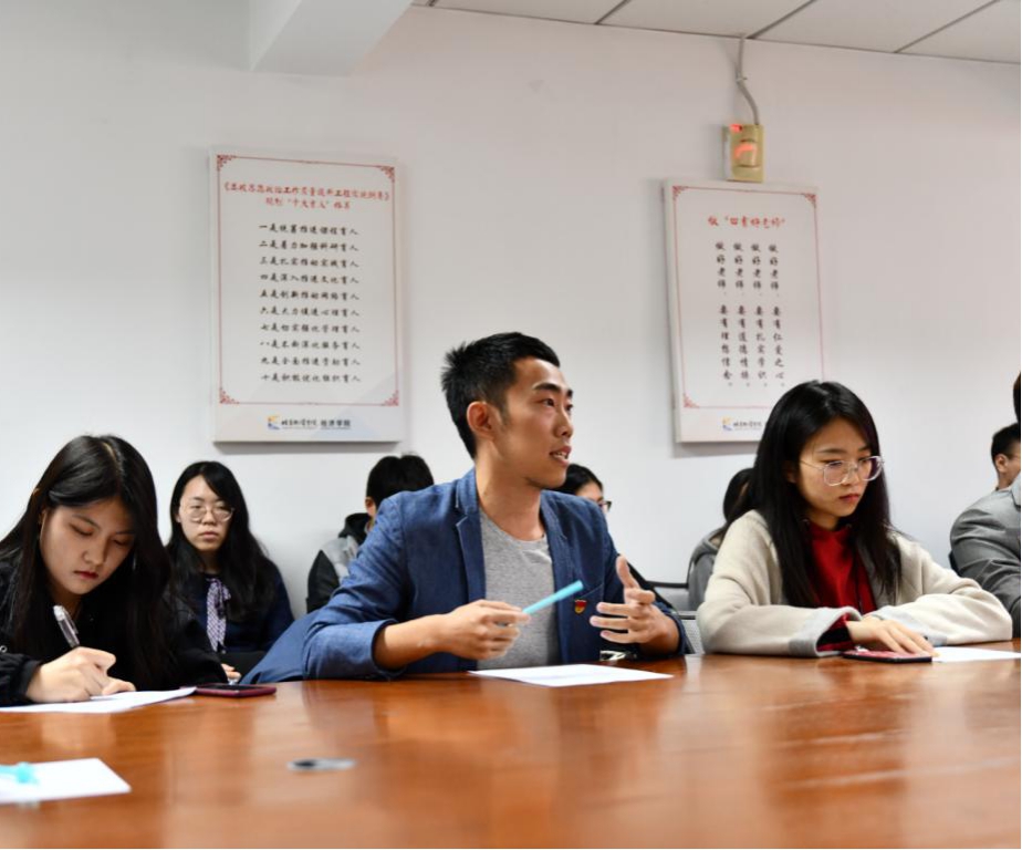 进而员工党员们围绕近期支部主题教育纷纷发表个人心得体会。本科生党员张继祎、朱鑫茹、研究生党员廉书源、石双达等多名同志结合自身专业学习、政治理论学习、暑期实践、国庆重大活动等表达了自己作为一名“金融人”的骄傲和身边众多优秀同学的鲜活激励,真诚表示要以身边优秀党员同志为榜样,不忘初心,牢记使命。