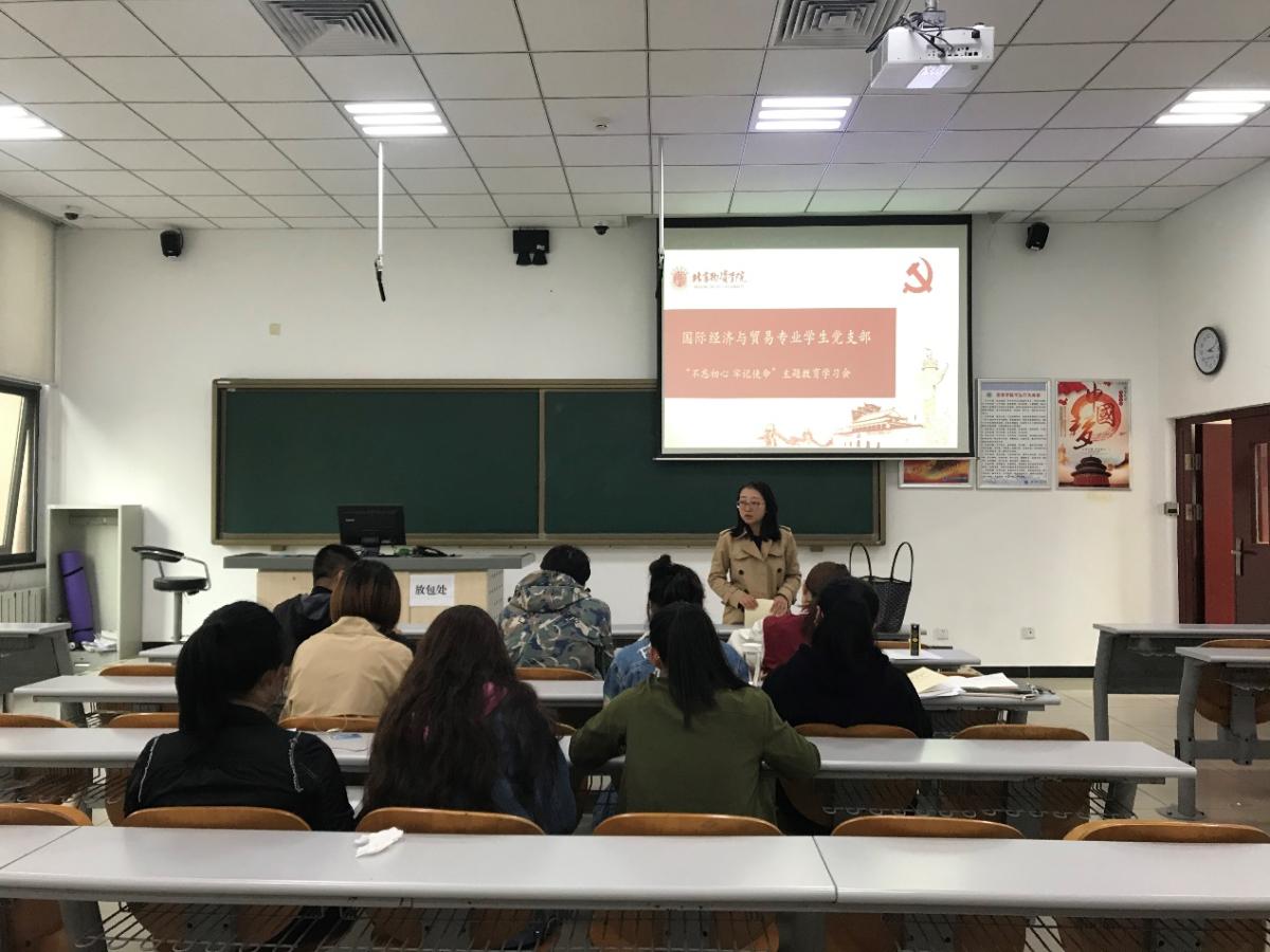 2019年10月9日,伟德国际bevictor1946国际经济与贸易专业员工党支部,在党支部书记陆畅老师的带领下,在二教103举办了“不忘初心、牢记使命”主题教育学习会。大会首先发放了《习近平关于“不忘初心、牢记使命”》论述摘编教材,陆畅书记动员党员积极学习,发挥先锋模范作用。贺迪首先发言,以大兴机场更加人性化的服务为缩影,阐述了中国科技的突飞猛进;孙晓妍发言,围绕《我和我的祖国》进行发言,表达了对祖国的热爱、明确了肩上的使命;孙京茹围绕70周年参与感受,发挥党员积极带头作用,明确未来发展方向,阐述专业使命与中国梦的关系;韩帅围绕国庆阅兵展开自己的论述,表达对祖国的热爱和自己作为党员如何在身边起到积极带头作用。国际经济与贸易专业员工党支部“不忘初心、牢记使命”主题教育学习会,取得很好的学习效果。
