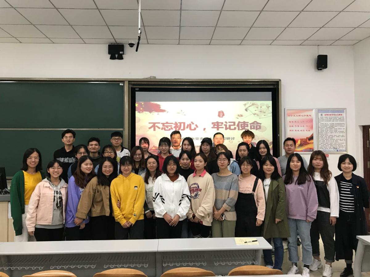 2019年10月9日下午1:30,伟德国际bevictor1946金融学专业员工党支部在二教102举行召开了“不忘初心、牢记使命”主题研讨会。金融学专业员工党支部书记姚昊炜老师以及支部全体员工党员出席了本次会议。姚昊炜老师首先简要介绍了本次研讨会的会议流程并说明了本次研讨会的重要意义。随后,研讨会正式开始。会议第一个环节,支部见面会,支部成员逐一进行自我介绍,促进各支部成员之间相互了解。会议第二个环节,我给祖国比个心。对于支部内部评选出的优秀作品,由许亭玉等学长学姐结合自身的亲身经历,向与会党员讲述了照片背后的故事。第三个环节,“不忘初心 牢记使命”主题分享会。支部成员积极踊跃,结合国庆期间自身的所见所闻所感和大家进行了分享。此次主题研讨会使支部的每一位成员都受益匪浅,也为今后支部进一步开展主题教育工作奠定了坚实基础。