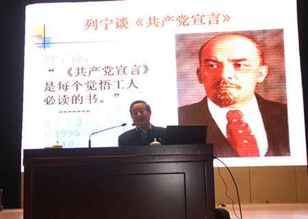 随后,魏续臻教授简单地介绍了《共产党宣言》作者马克思与恩格斯的生平事迹,以及这本书诞生的背景和内容梗概,说明了《共产党宣言》的历史地位及作用、内在矛盾以及现实意义等方面的内容,尤其强调了《宣言》的核心思想。接着,魏续臻教授也对资产阶级的成就和缺陷做了详细的讲解,使学员们对《共产党宣言》有了更近一步的认识和理解。