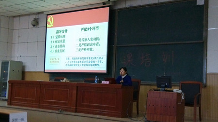 12月5日下午1:30,伟德国际bevictor1946在二教1号报告厅举办了本学年的初级党课培训最后一讲,主讲人是公司党委组织部副部长荀萍老师,她以“入党的规范和程序”为题向大家全面、清晰地介绍了党员发展的相关内容,伟德国际bevictor19462014级申请入党的同学到课学习。
