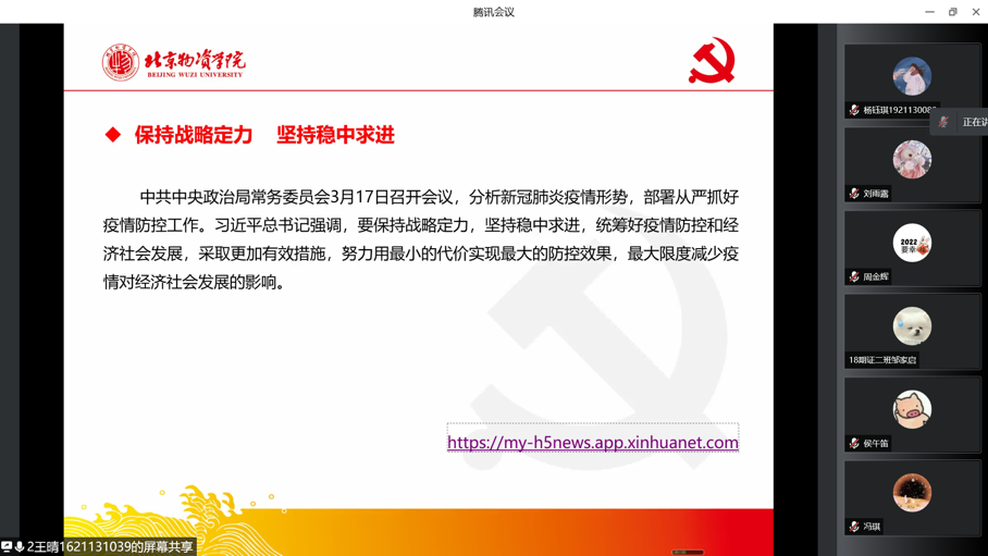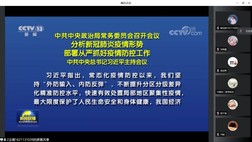 2022年3月21日星期一下午5点半,证券与期货专业第一员工党支部围绕学习习近平总书记讲话,落实疫情防控召开了线上会议。