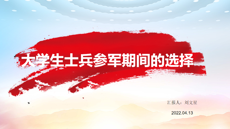 刘文星学长以“老员工士兵参军的选择”为题目进行了分享。他说,在参军选择方面,老员工多以义务兵和军士的身份入伍,义务兵和军士在不同方面上有所差异。另外,刘学长还对参军选择、老员工参军优势、什么时候参军合适等问题进行了详细解答,并对于这些问题给出了他个人的建议和看法。最后,刘学长以一句响亮的口号作为结尾:“保卫国家终不悔,绿色军营献青春!”充分表达了他对军营的热爱与回忆。