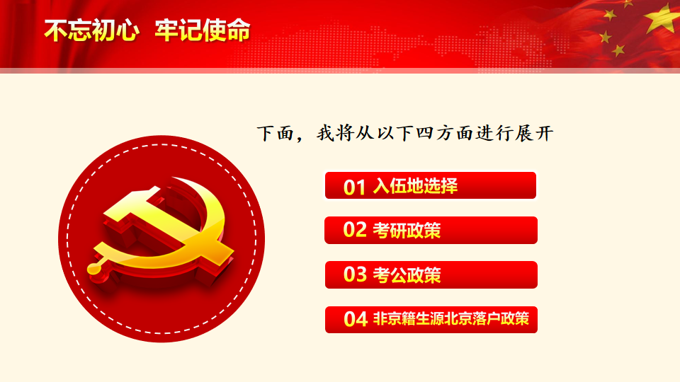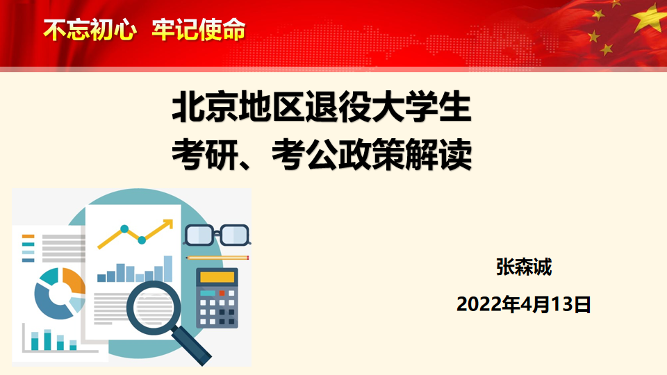 张森诚同学今年顺利考上了清华大学的研究生。他从“入伍地选择、考研政策、考公政策、北京籍生源北京落户政策”四方面展开。首先,他为大家分享了从公司入伍和别地入伍的不同优势。然后展示了考研高校录取退役老员工的条件并分享了几个士兵计划考研公众号,也讲述了个人考研道路上的感悟。最后,他不但展示了2021年12月北京公务员士兵计划空缺岗位,还对北京公务员士兵计划政策作出了分析,有利于士兵考公成功上岸。