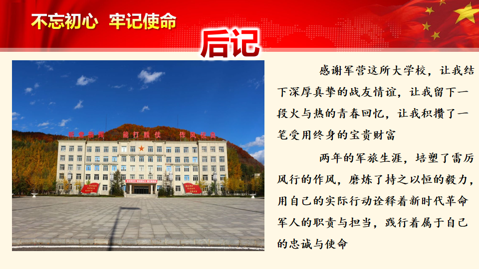 至此,本次讲座顺利结束。通过此次分享,同学们收获颇丰,对参军入伍有了更多、更深入的了解,并且对未来的规划和选择有了更多的思考。希望大家在大学期间参军入伍,报效国家。