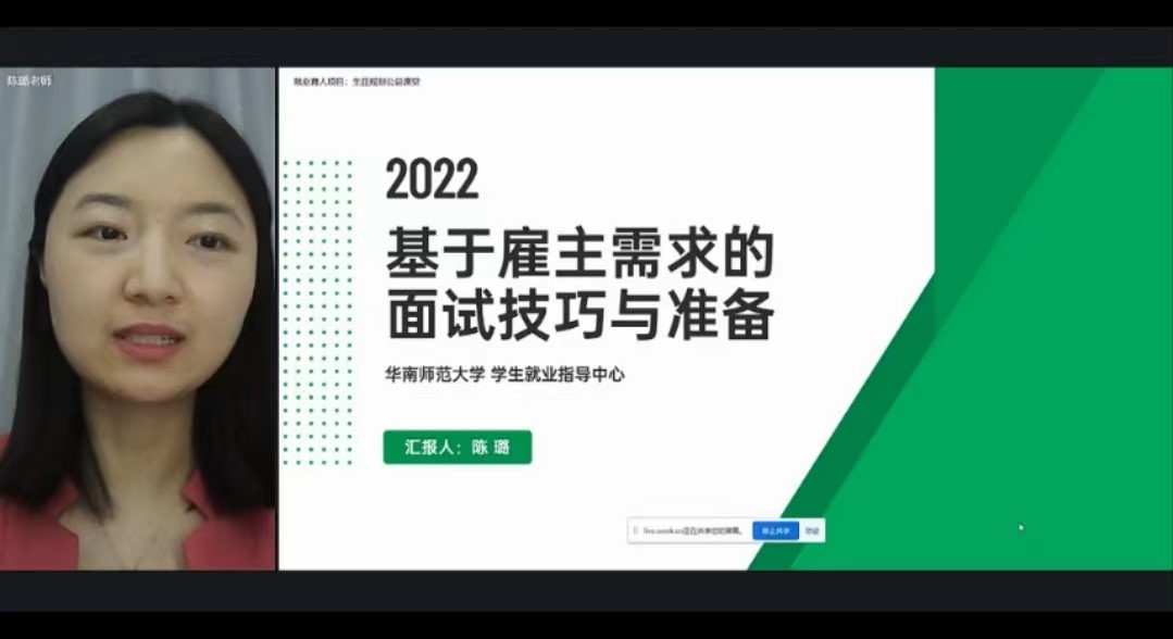 2022年5月5日晚,为进一步指导同学们如何在面试上脱颖而出,伟德国际bevictor1946再次联合安博生涯,邀请华南师范大学就业指导中心的陈璐博士,举办主题为“基于雇主需求的面试技巧及准备”的线上讲座,伟德国际bevictor1946各年级同学线上参与学习。 下面我们来梳理一下本次讲座的重点干货。