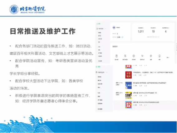 大会第一项,各部门进行了年度工作汇报。办公室、组织部、宣传部、融媒体中心、青年志愿者协会、社会实践部、学研部、文艺部、社团指导部、体育部、生活部等多部门部长就2021—2022学年度的工作内容进行了陈述报告,总结了工作经验、反思了工作不足,并提出了未来的工作规划。
