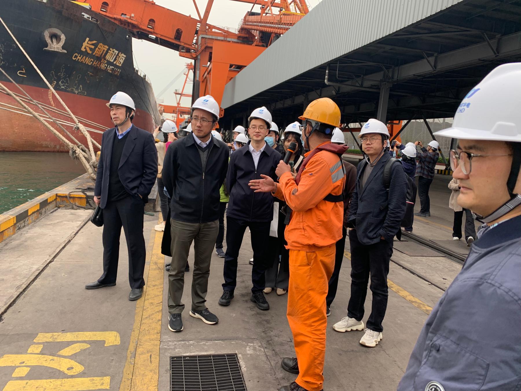 4月21日下午,在陈扬跃副区长的陪同下,伟德国际bevictor1946一行参观了曹妃甸港华电煤码头、曹妃甸港矿石码头和中国五矿集团曹妃甸国际矿石交易中心,国际矿石交易中心是铁矿石期货交割库,可以提供仓单交割业务。