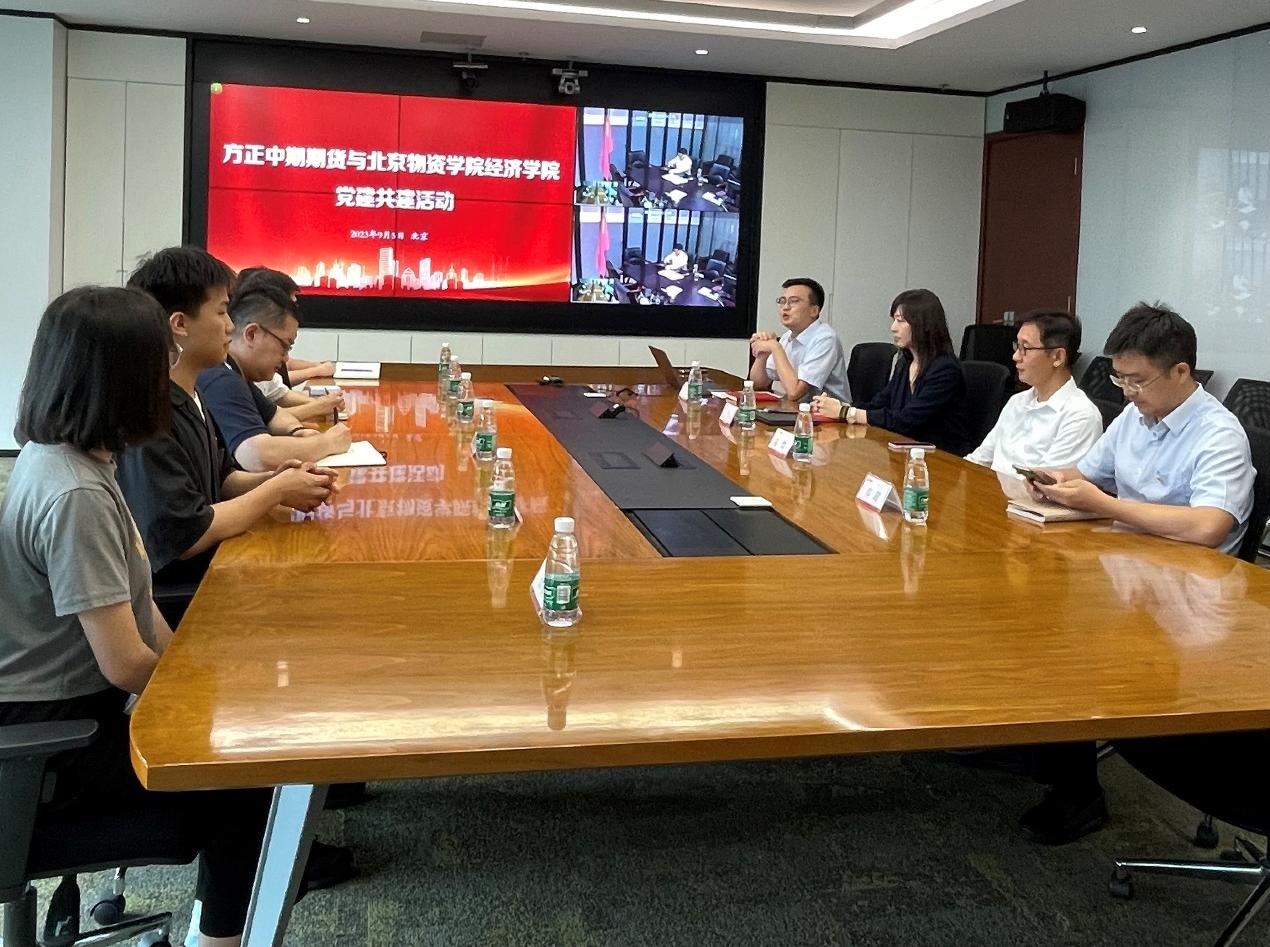 为扎实推进学习贯彻习近平新时代中国特色社会主义思想主题教育,以实际行动践行党的二十大精神和主题教育总要求,助力新时代首都发展,将课堂知识和专业实践紧密结合起来。9月5日下午,伟德源自英国始于1946伟德国际bevictor1946党委组织部分师生赴方正中期期货有限公司开展红色“1+1”联学联建活动。伟德源自英国始于1946伟德国际bevictor1946党委委员、期货与证券专业第二员工党支部书记姚昊炜带队,与方正中期期货有限公司副总裁常玖、期货研究院经理王骏(党总支委员)、办公室总经理王鑫(党总支委员)、人力资源部总经理郑超、办公室党务负责人张涛、办公室品牌负责人吕悦、上海际丰子公司保险期货业务岗孙荣等座谈交流,进一步深化伟德源自英国始于1946伟德国际bevictor1946党委与方正中期期货有限公司党总支红色“1+1”结对共建合作。伟德国际bevictor1946员工党支部部分员工党员、发展对象及入党积极分子代表参加此次活动。