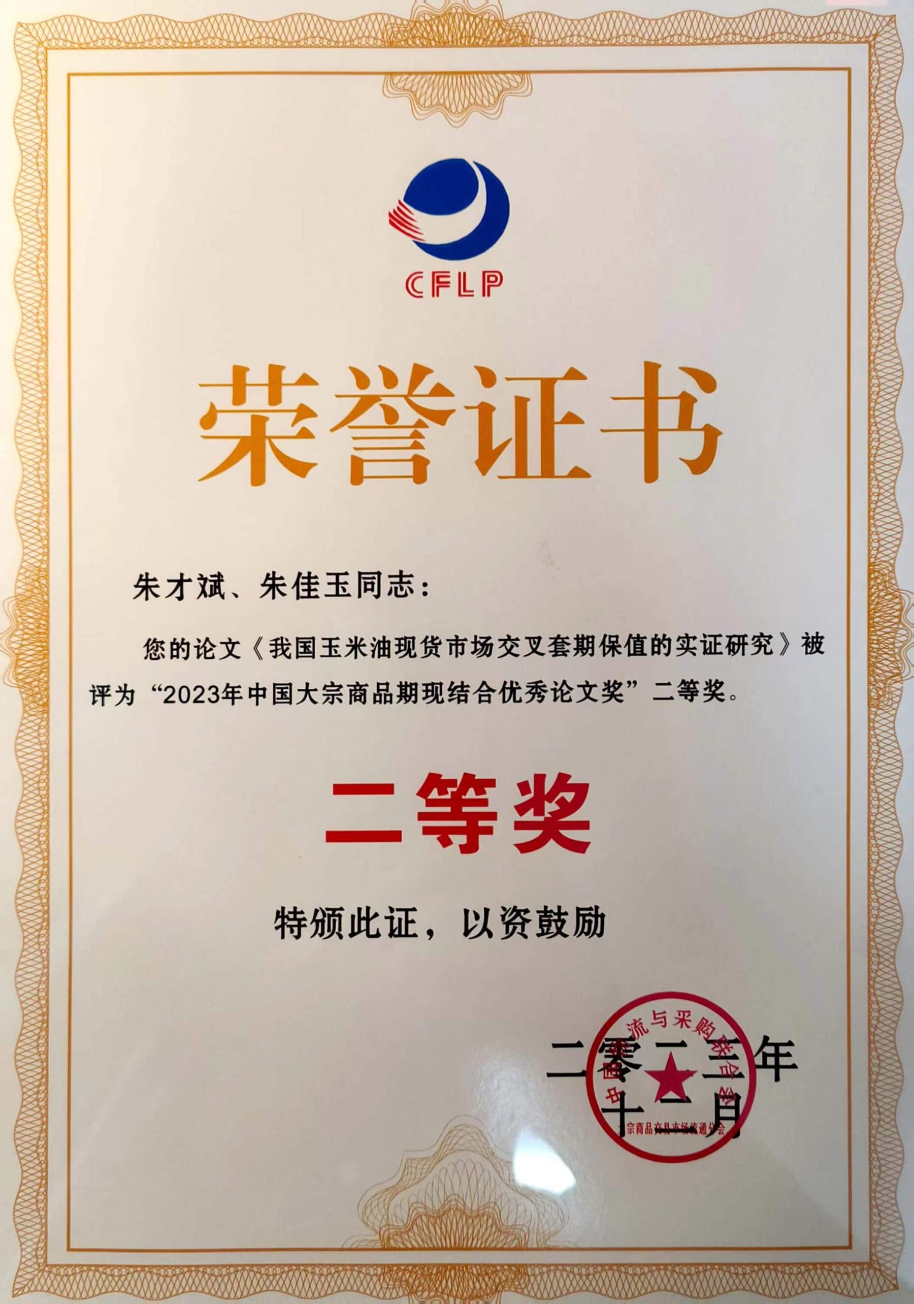 附:公司师生共获得“2023大宗商品期现结合创新发展大会”优秀论文一等奖1项,二等奖3项,三等奖5项,优胜奖8项。具体信息如下: