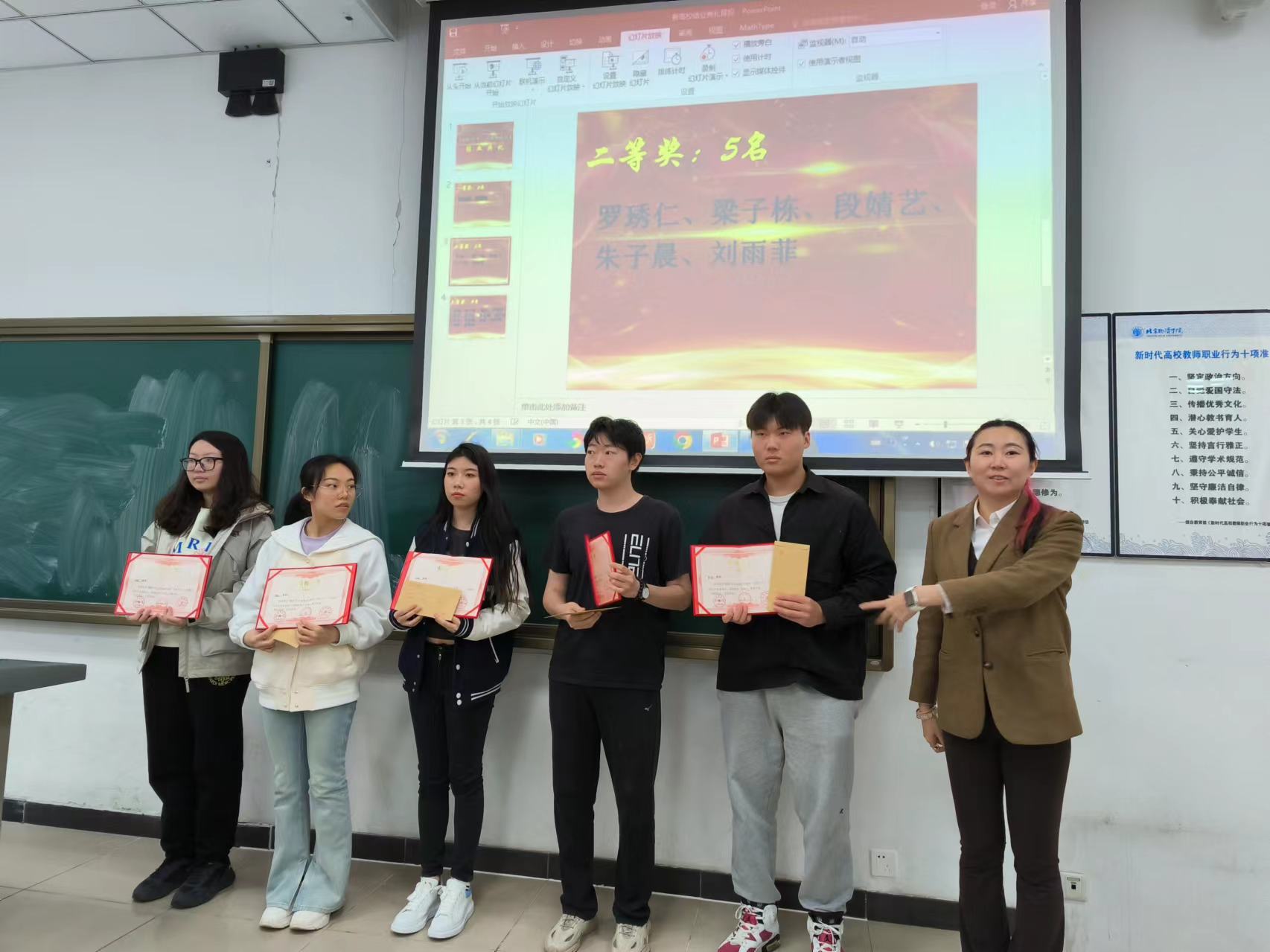 在第二个环节中,吕蓓经理宣读了2023年度大连商品交易所“百校万才”工程教学项目课程获奖名单,一等奖2人,每人奖学金是3000元;二等奖是5人,每人或奖学金1000元;三等奖14人,每人获得奖学金650元,共计发放奖学金20100元。