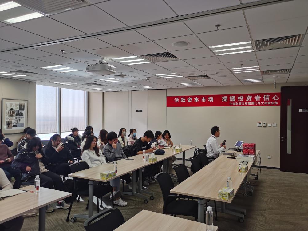 中金公司是中国著名的投资银行之一,拥有丰富的业务经验和卓越的品牌声誉。本次参访主要分为讲解金融行业形式、教授炒股技巧与实地参观等流程。在参访过程中,中金财富证券专业执行总经理李鸣向同学们介绍了公司的业务范围和企业文化,同时也对金融行业与财富管理行业进行了系统介绍。让同学们对风云变幻的市场有了更清晰的概念,也对金融有关行业有了更广泛的认识,打开了同学们的就业思路。公司与企业共同搭建了校园与社会间的桥梁,有助于员工更好的进入社会。针对同学们关注的职业发展问题,中金公司提供了宝贵的建议。他们表示,年轻人应注重积累实践经验,勇于试错,培养自己的综合素质,包括沟通能力、团队协作以及解决问题的能力。此外,持续学习与提升自己的专业素养也是关键。