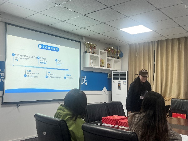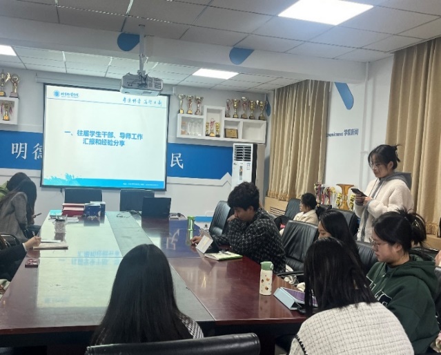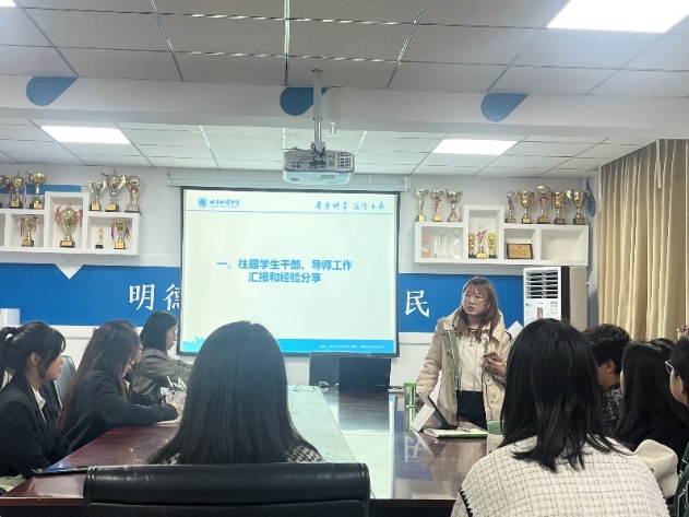 会议第一项,为了让新任成员能够更加了解自身工作岗位,汲取经验,我们邀请了往届员工干部代表、导师代表进行经验分享和工作汇报。