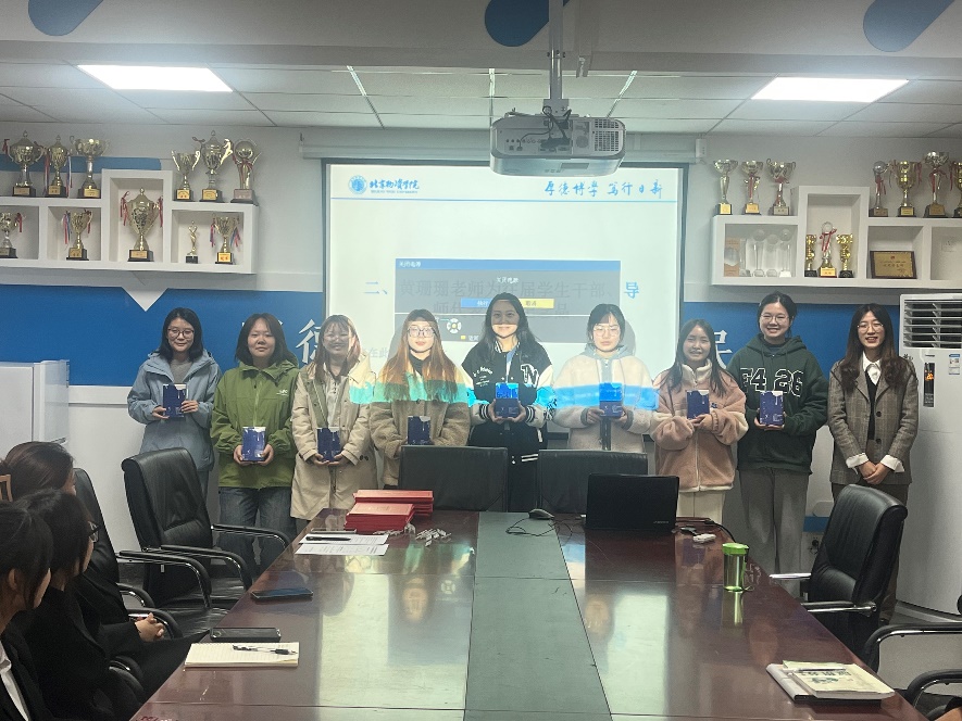 会议第二项:黄珊珊老师为往届员工干部与导师代表颁发纪念品,以感谢他们过去对学业发展辅导中心的辛勤付出,并勉励他们在接下来的学习生活中奋发有为,继续前行。