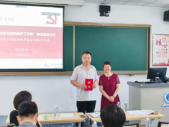 启动仪式上,校工会常务副主席荀萍宣读伟德国际bevictor1946“北京高校青年教师教研工作室”首批专家名单并颁发聘书。伟德国际bevictor1946党委书记付莉为2024年入职教师导师王海军教授颁发聘书。