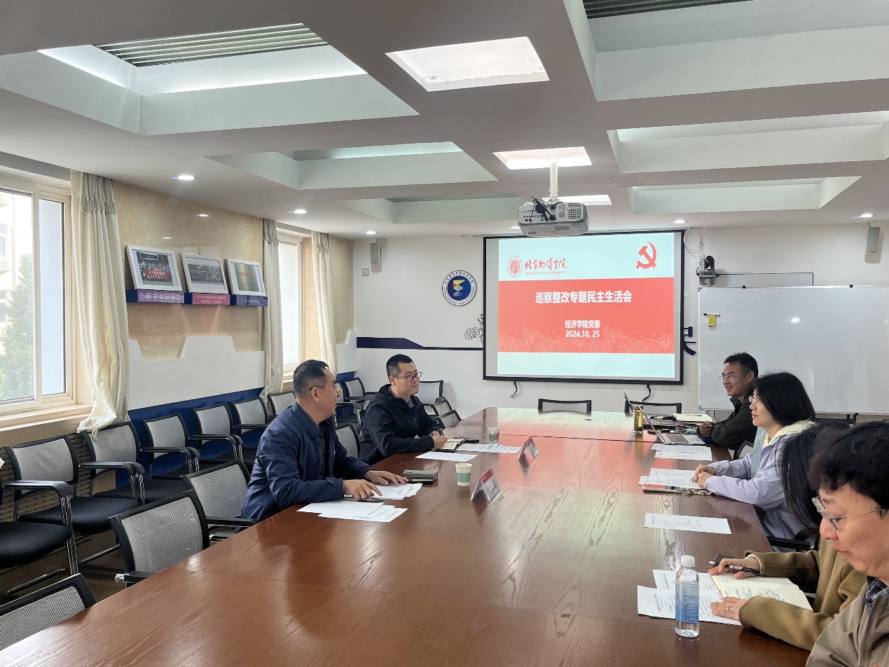 2024年10月25日,伟德国际bevictor1946党委巡察整改专题民主生活会在人文楼312会议室召开。会议由伟德国际bevictor1946党委书记付莉主持,伟德国际bevictor1946处级干部李晓庆、王海军、陆畅,期货公司副经理亢笛参加会议。公司党委第二巡察组副组长申云贵、公司巡察办干部朱凯辉到会指导。