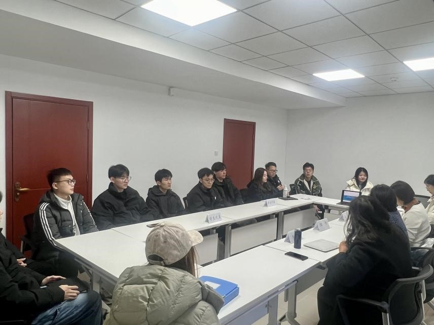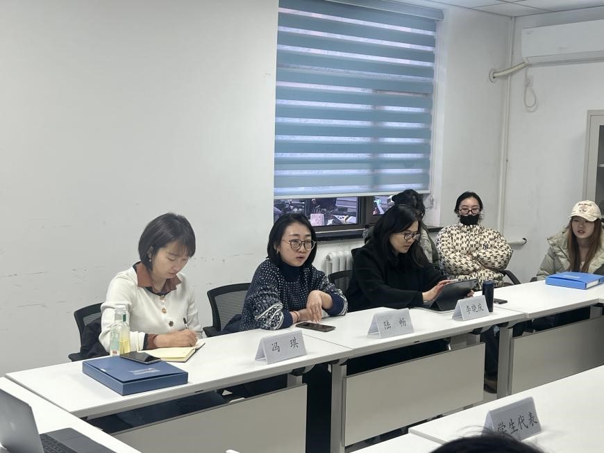 走访结束后,在富河园101会议室开展了座谈会。23、24级国商与金融专硕班的员工代表与老师们就课程设置、教学资源、生活设施以及就业指导等主题进行了交流,提出了许多中肯的意见和建议。与会老师认真倾听并详细记录了每一条建议,积极讨论解决方案。针对部分员工提出的具体问题,老师们现场给予了耐心解答和指导。